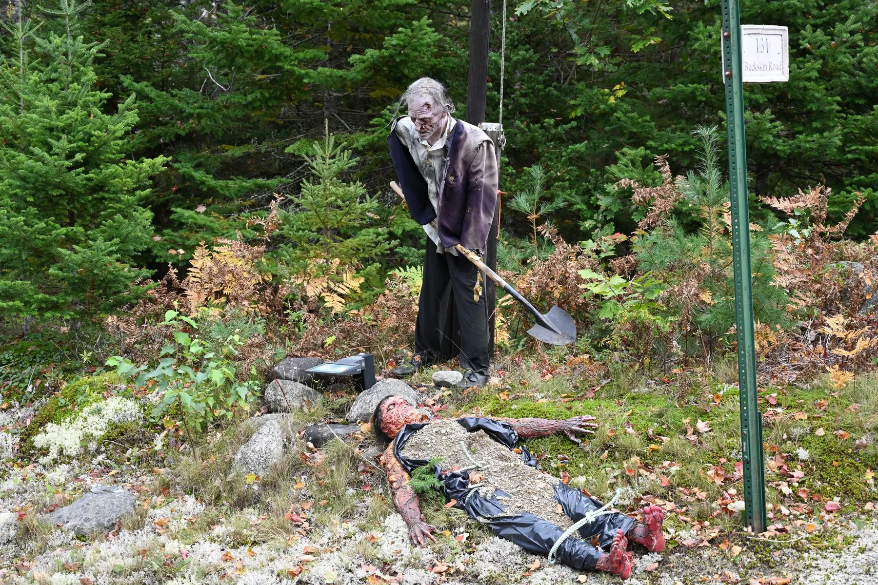 Aber auch außerhalb von Salem, einfach so an einer Zufahrt vom Highway zu einem weit entfernten Wohnhaus findet man Halloween-Dekoration. Ich will nicht wissen, wie das Haus dekoriert ist, wenn es an der Zufahrt schon so aussieht: