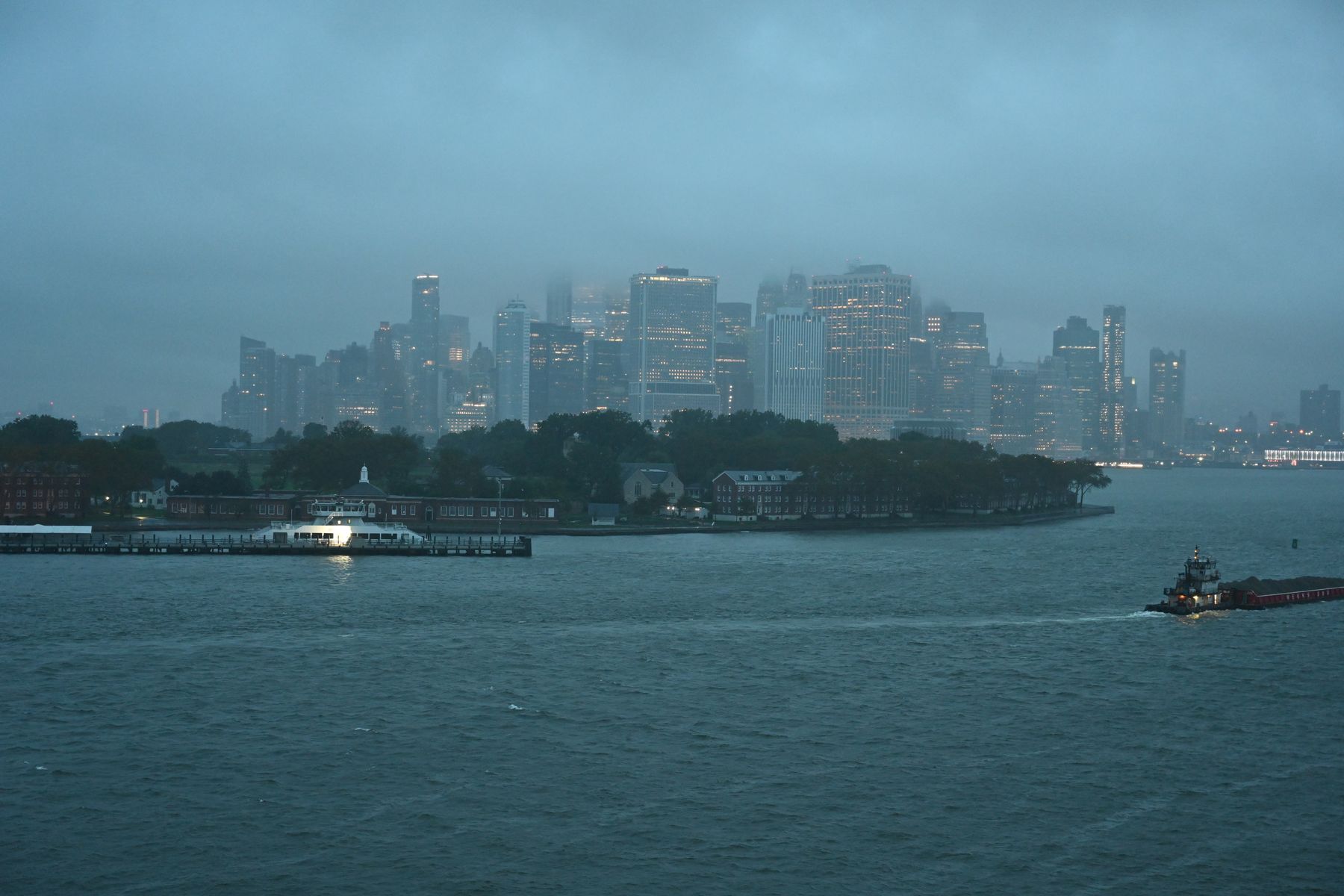 Ankunft mit der QM2 im posttropischen Sturm Ophelia. Die Straßen sind dermaßen überflutet, dass stundenlang kein Taxi kam. Unser geplanter Spaziergang vom Hotel in Brooklyn nach Manhattan fiel aus. Doch die folgenden Tage hatten wir bis auf einmal prima Wetter.