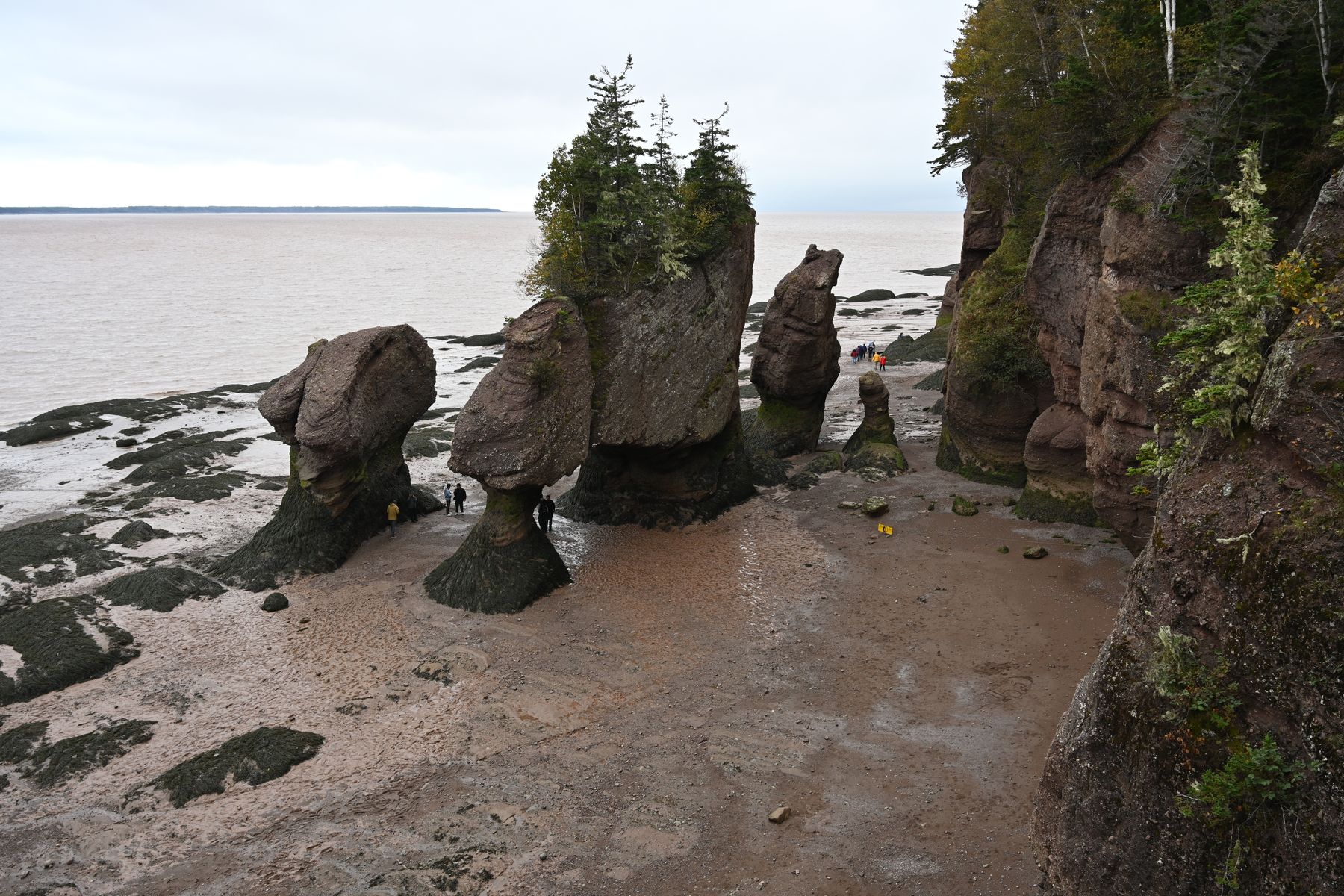 Station machten wir auch bei den Hopewell Rocks. Hier gibt es eine Tide von bis zu zehn Metern und wir hatten Glück, dass gerade Ebbe war. Die Felsen sind nämlich normalerweise von Wasser umflutet. Vergleichsbilder im Besucherzentrum aber auch im Netz zeigen den Unterschied. Hat uns gut gefallen, leider hatten wir nicht die Zeit, bis zur Flut zu warten. Hätten wir in der Nähe übernachtet, dann gerne: