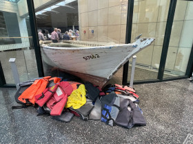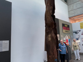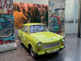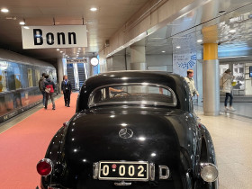 sollte man vielleicht meiden . Ich hatte ja schon mal ein Foto der Notration von 1945 gezeigt , man hat davon gehört aber wenn man die Ration vor sich sieht ist man doch geschockt. Auch die Fotos von der Teilung Deutschlands ( viele kannte ich nicht) haben beeindruckt . Auch eine Stahlsäule vom WTC 9/11 ist im Orginal zu sehen und eines der ersten Flüchtlingsboote. Man kann im nachgebauten Plenarsaal Platz nehmen und den Debatten in Wort und Bild nachspüren . Im Untergeschoss steht das Auto das Adenauer benutzte und auch der