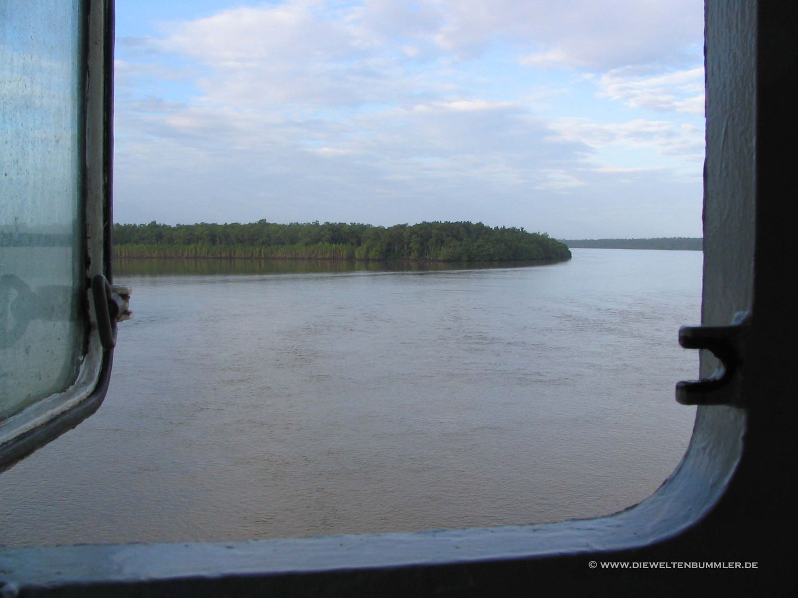 Das war der Blick aus der Marfret Normandie, als wir morgens zum ersten Mal in Französisch-Guayana aus dem Fenster schauten.