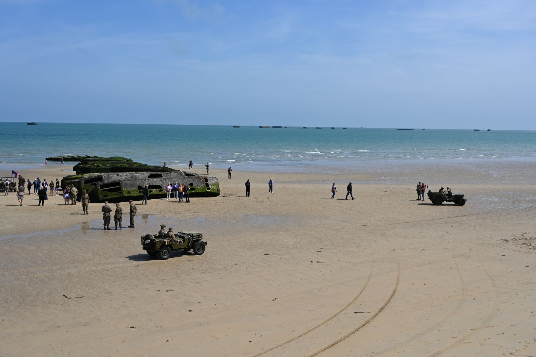 Wir haben uns einige Museen angeschaut und hätten noch mehr besichtigen können. Aber dazwischen gibt es eben auch noch jede Menge andere Veranstaltungen. Und immer wieder sieht man im Straßenverkehr die vielen Jeeps und Militärlastwagen. Diese werden zu hunderten mit Lkw angeliefert und dann fahren die Besitzer stilecht mit entsprechender Kleidung der 40er-Jahre von Ort zu Ort.