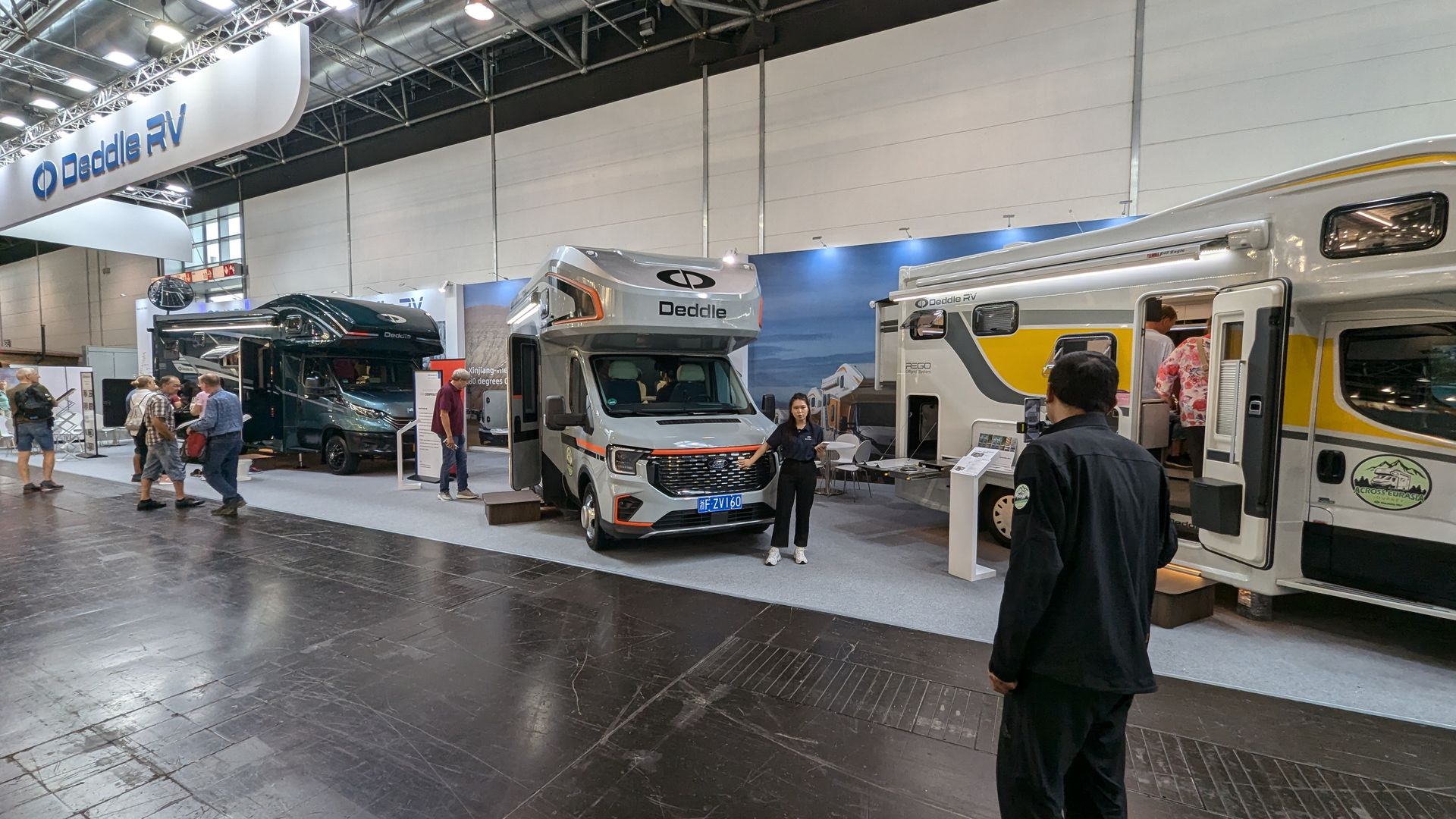 Es gab also meiner Meinung nach keine großen Überraschungen und Neuerungen. Spannend fand ich aber auf jeden Fall die drei chinesischen Wohnmobile, die in Zusammenarbeit mit La Marca hergestellt wurden. Diese drei Fahrzeuge wurden auf dem Landweg durch Russland nach Düsseldorf gebracht. Ich musste ein wenig schmunzeln, denn die Wohnmobile hatten noch ihre originalen chinesischen Kennzeichen dran - und natürlich eine grüne Umweltplakette für Deutschland. Keine Ahnung, was die Insassen während ihrer Fahrt alles erlebt hatten. Aber in Deutschland mussten sie sich also zunächst um eine Umweltplakette bemühen. Nun ja...