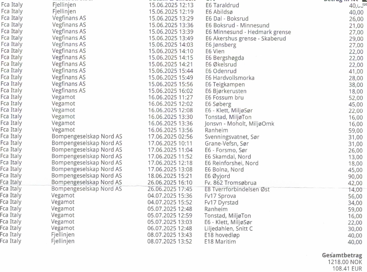 Und heute erhielt ich Post dazu aus Norwegen. Die Rechnung für meine Maut ist da. Interessanterweise aber nicht nur für die diesjähre Reise, sondern auch für die Reise im letzten Jahr. Das stimmt auch, denn für 2024 erhielten wir noch keine Rechnung. Interessant deshalb, weil wir ja im letzten Jahr mit einem ganz anderen Fahrzeug und Kennzeichen unterwegs waren. Da die Adresse bzw. wir als Halter identisch sind, konnte das aber dennoch zusammengefasst werden.