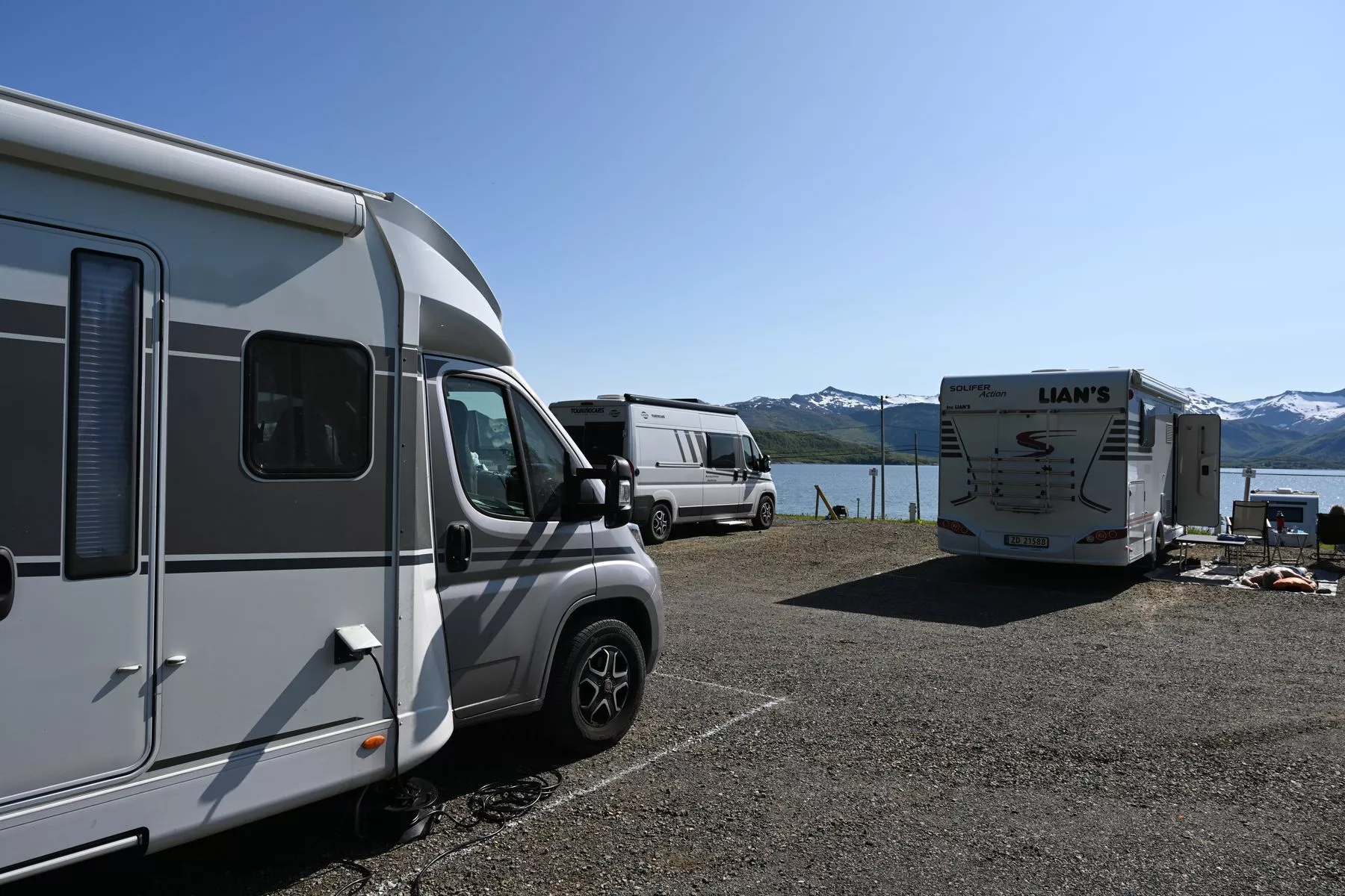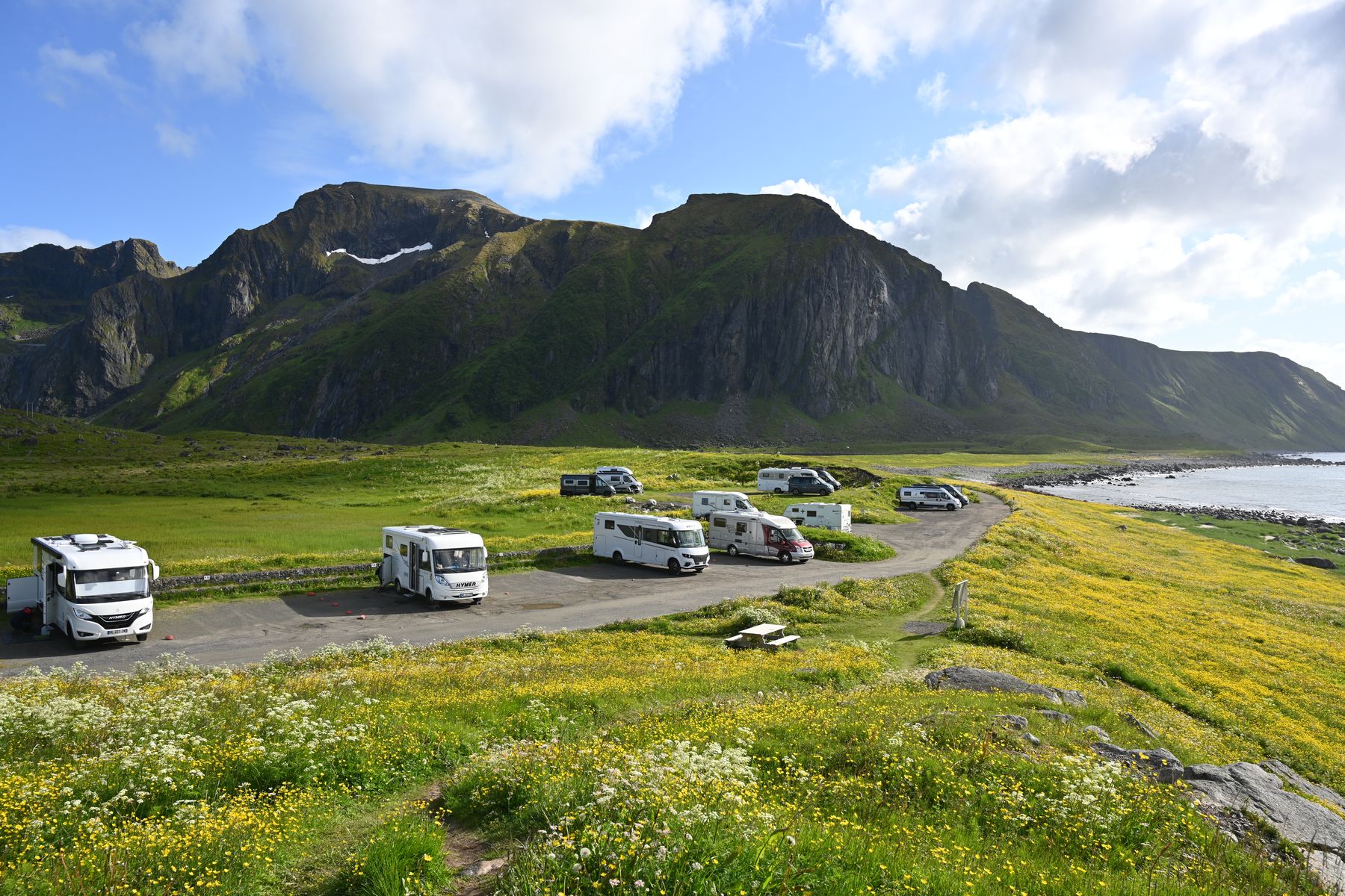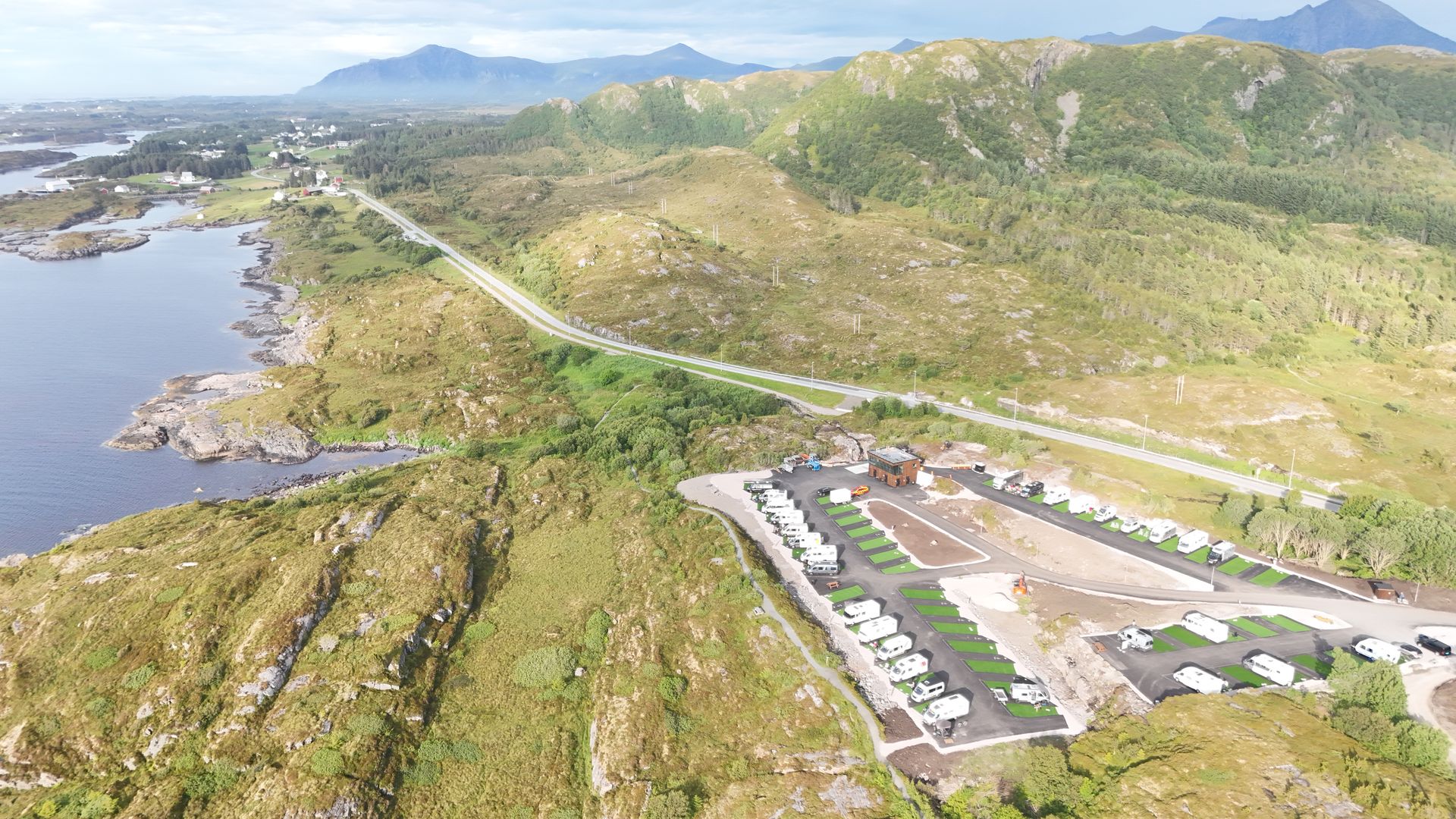 Einen ziemlich schicken Stellplatz fanden wir am nächsten Abend in Innhavet. Direkt auf den Schären steht man hier und hat man ein paar Flächen hergestellt. Weil dort oben das Gras natürlich nicht so üppig wächst wie bei uns, arbeitet man dort mit Kunstrasen. Auf den ersten Blick irgendwie seltsam, aber wir haben das später auch auf anderen Plätzen gesehen und fanden das dann irgendwie nett. Ist halt ein Farbtupfer und sieht natürlich gepflegt aus: