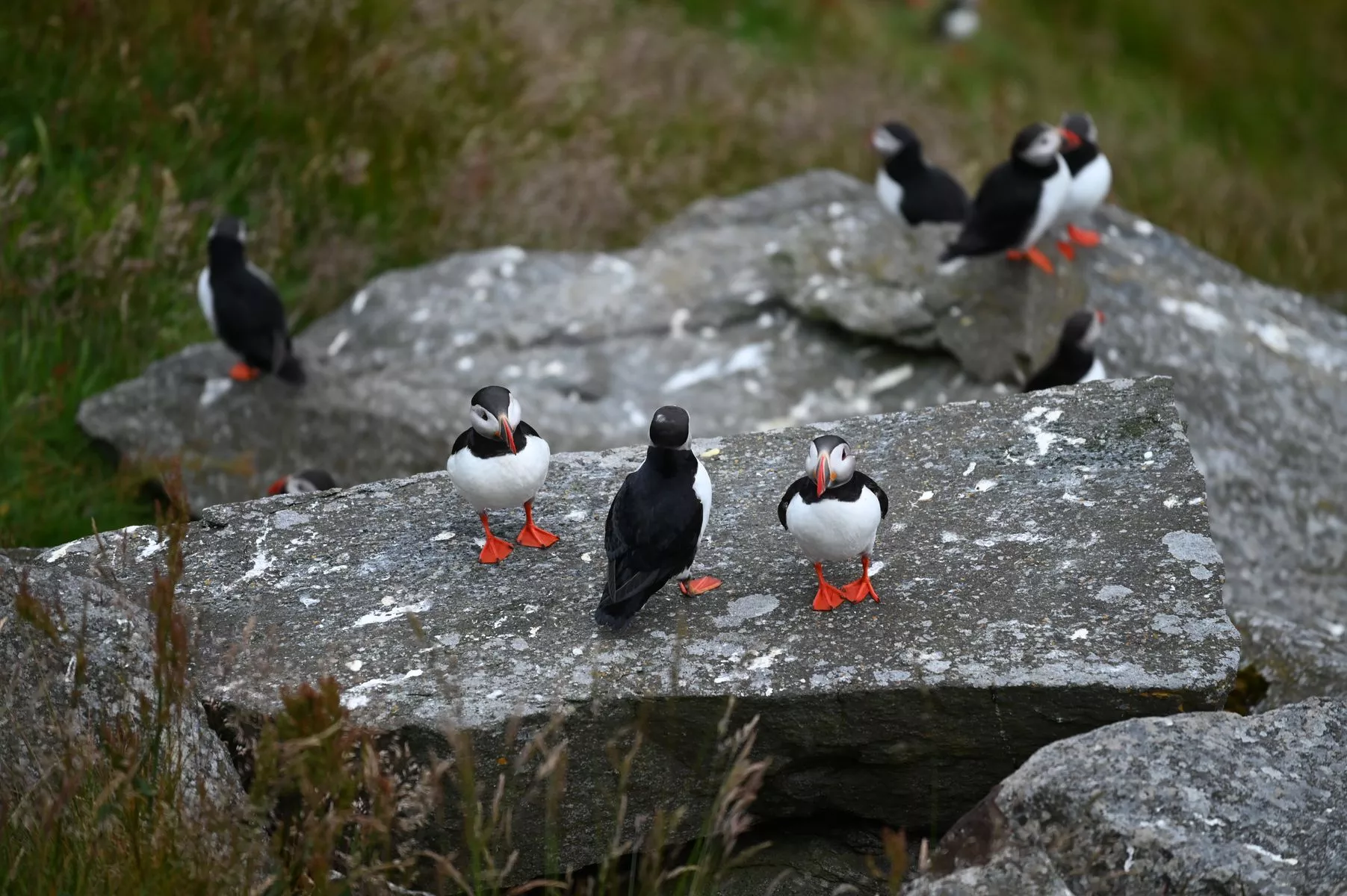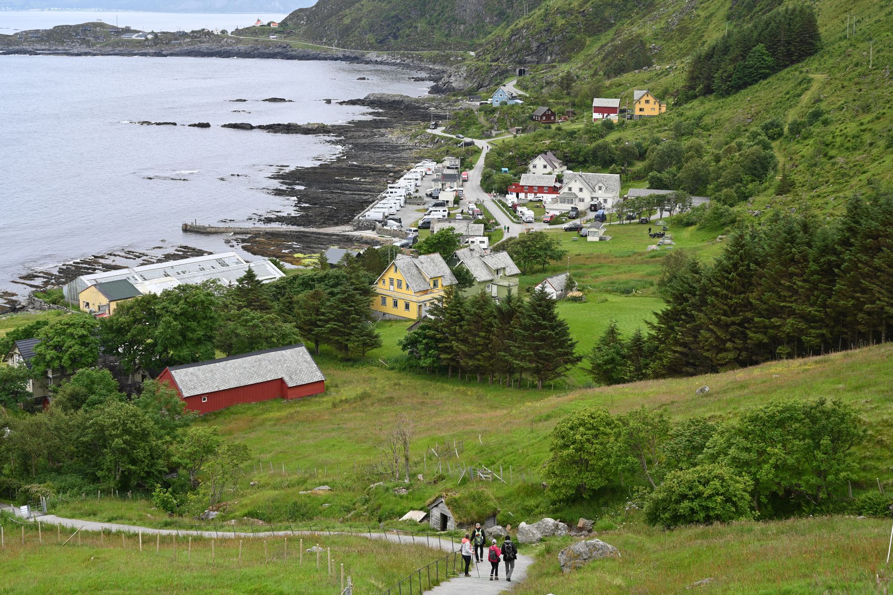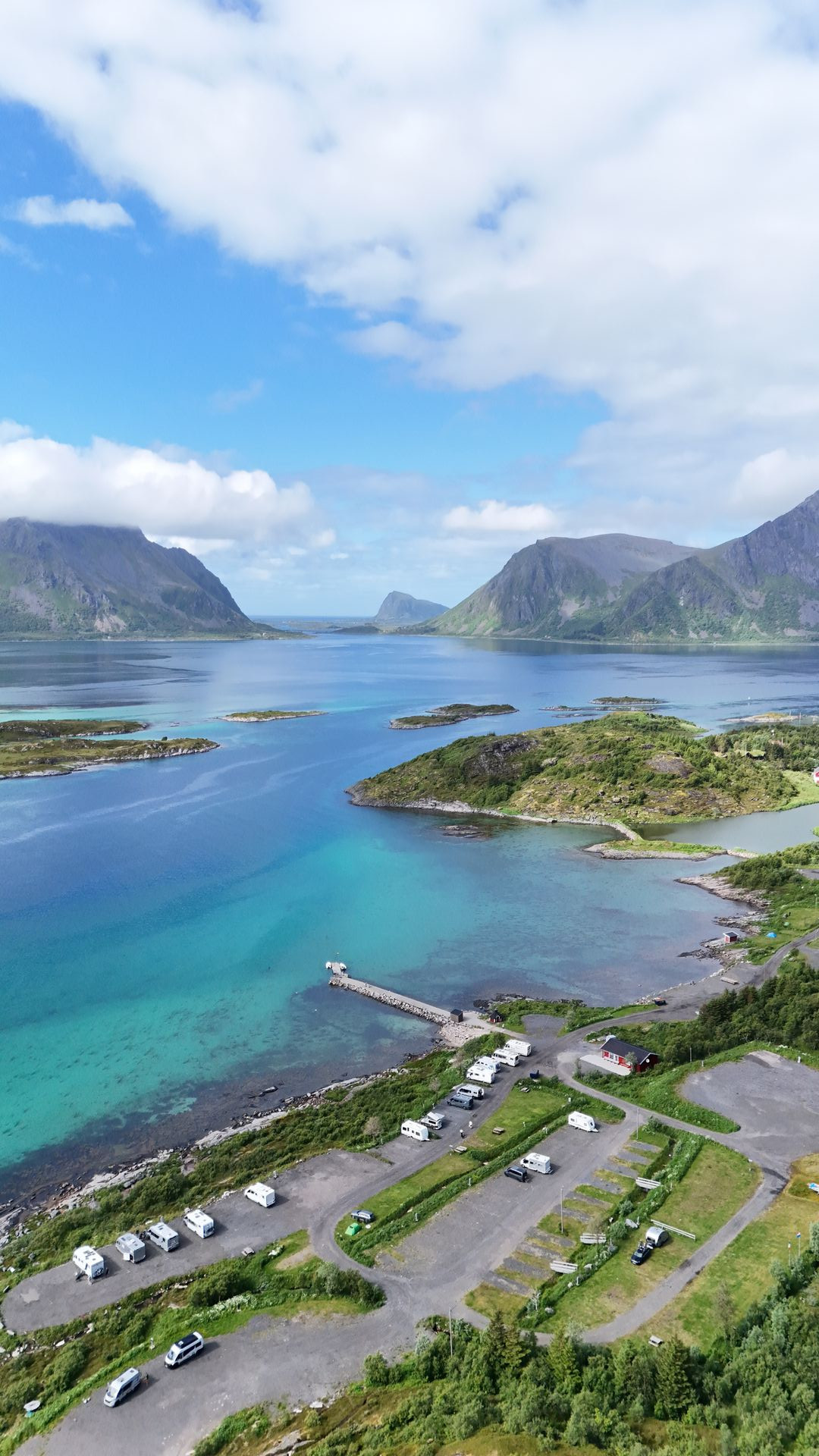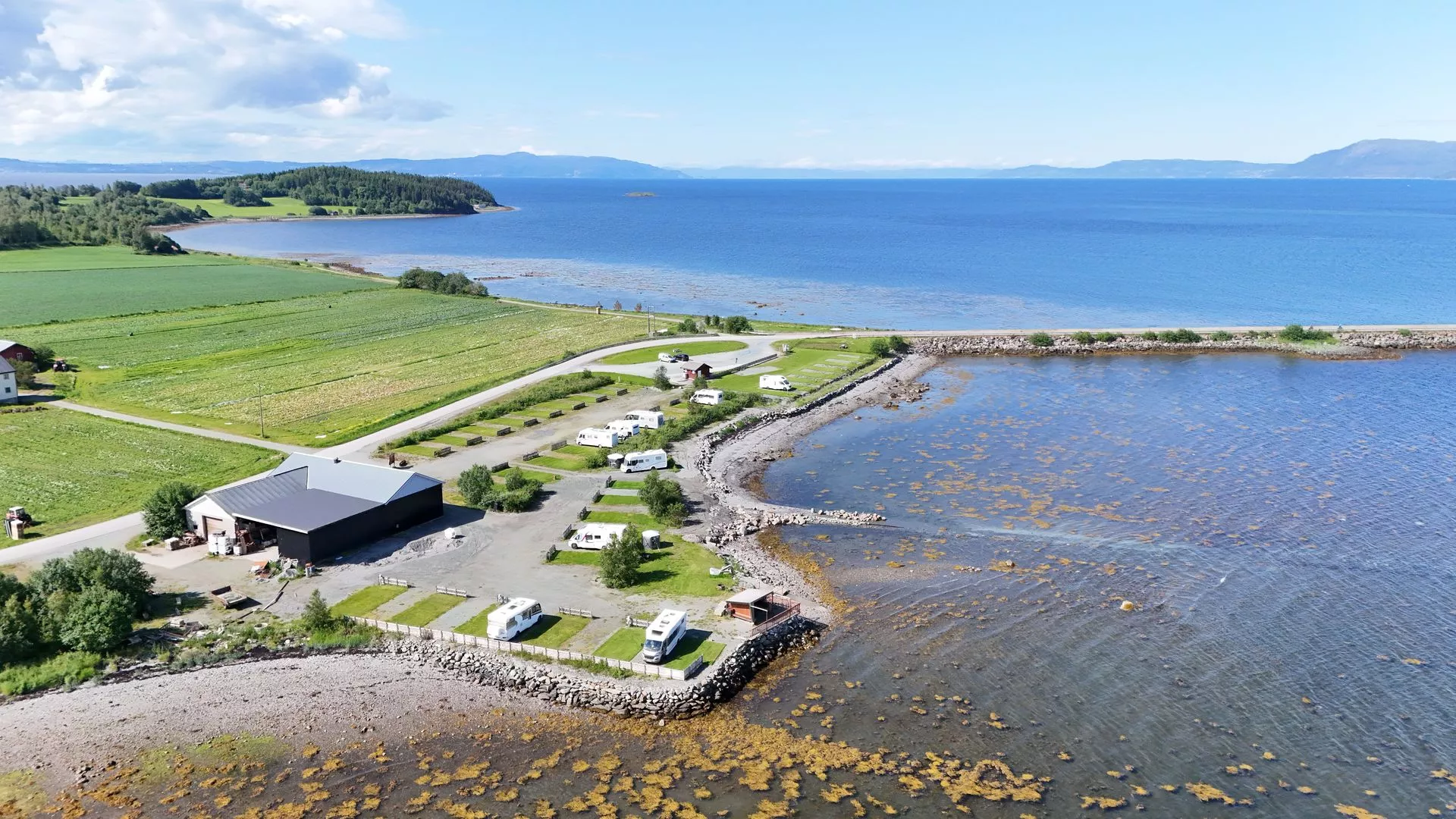 Einen ziemlich schicken Stellplatz fanden wir am nächsten Abend in Innhavet. Direkt auf den Schären steht man hier und hat man ein paar Flächen hergestellt. Weil dort oben das Gras natürlich nicht so üppig wächst wie bei uns, arbeitet man dort mit Kunstrasen. Auf den ersten Blick irgendwie seltsam, aber wir haben das später auch auf anderen Plätzen gesehen und fanden das dann irgendwie nett. Ist halt ein Farbtupfer und sieht natürlich gepflegt aus: