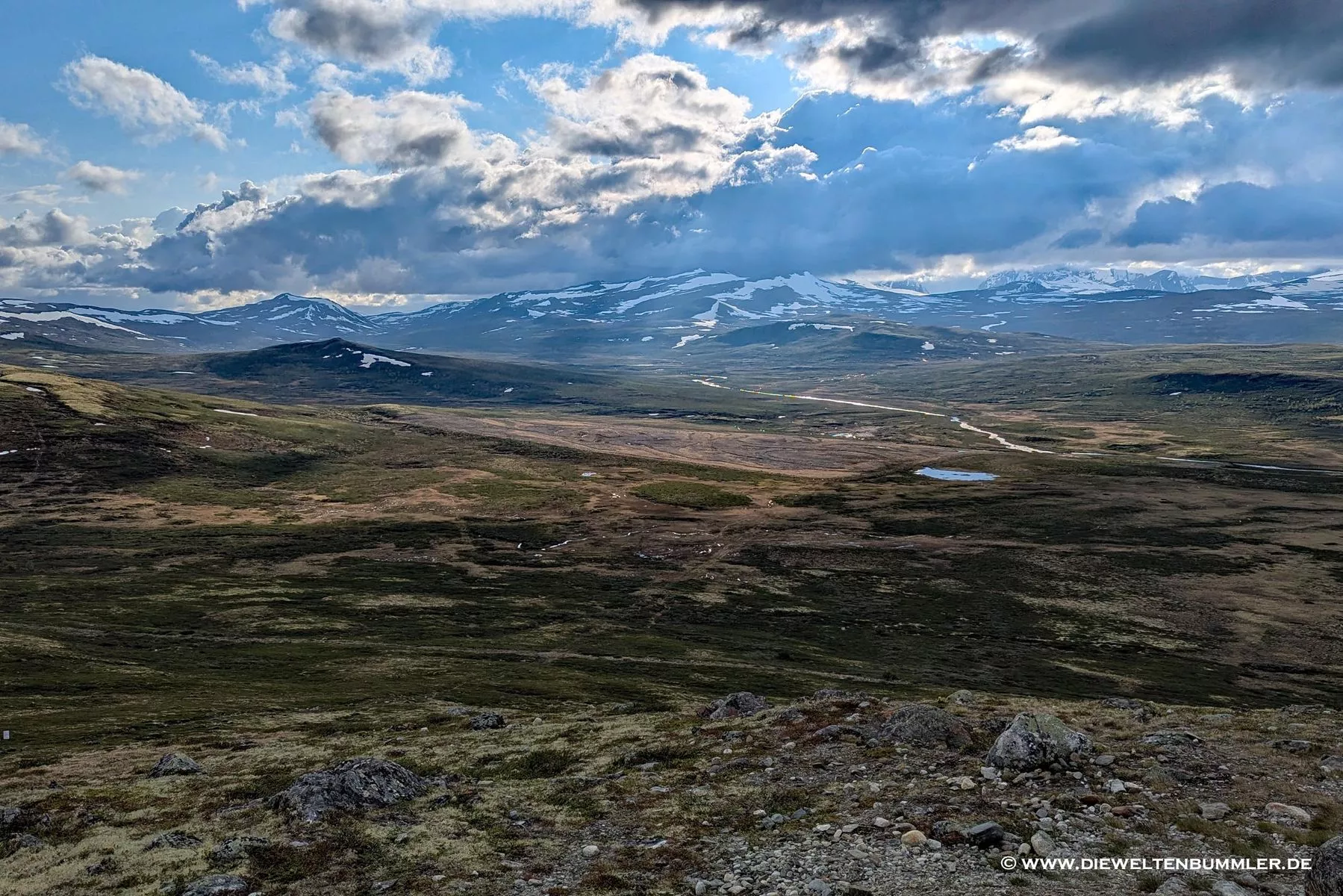 Die erste Übernachtung in Norwegen verbrachten wir auf einem Campingplatz nördlich von Dombås in einem Fjell und nutzten die Gelegenheit zu einer abendlichen Wanderung auf den Snøhetta: