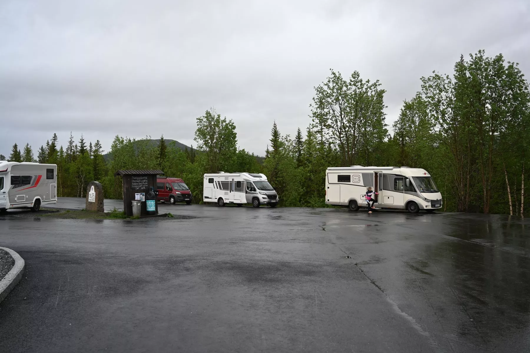 Leider war uns nicht bewusst, dass dieser kostenpflichtige Privatparkplatz in der Nacht auf von Kühltransportern zur Pause genutzt wird. Blöd, dass er sich genau neben uns stellte. Das veranlasste uns dazu, in der Nacht weiter zu fahren. War ja schon rund um die Uhr hell, daher kein Problem. 30 Minuten später fanden wir einen anderen, ruhigeren Parkplatz.