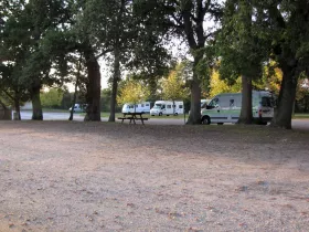 Wohnmobilstellplatz, 86500 Moulismes. Kurz hinter dem Ortseingang von Moulismes führt unsere Route auf der D729 eigentlich nach rechts, Richtung Montmorillon. Doch kann Moulismes als schöner Übernachtungsplatz dienen. Wenige Meter hinter dem Rathaus ist auf der linken Seite ein großer Parkplatz für Lastwagen zu sehen. An diesem müssen wir noch vorbei und erblicken kurz darauf auf der rechten Seite einen kleinen See und einen Tennisplatz. Hinter dem Tennisplatz befindet sich die Einfahrt zu einem Wohnmobilstellplatz. Ganzjährig geöffnet; ca. 50 Stellplätze auf Schotter und Rasen, teilweise unter Bäumen; Picknickplätze; Toiletten; Duschen; Jetons für die Entsorgungssäule kosten 3 € und sind im Supermarkt im Stadtzentrum erhältlich. V + E für Wohnmobile. Stand: 2009
