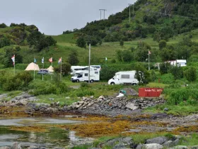 Aber es gibt einen echt netten Stellplatz. Stellplatz ist schon fast untertrieben. Immerhin hat man kostenloses W-Lan, ein ordentliches Sanitärgebäude, einen kleinen Bootsanleger und auch noch ein Häuschen mit Küche. Und das zu einem sagenhaften Preis von umgerechnet 15 Euro. Für norwegische Verhältnisse wirklich ein Schnäppchen. Außerdem noch in toller Lage.