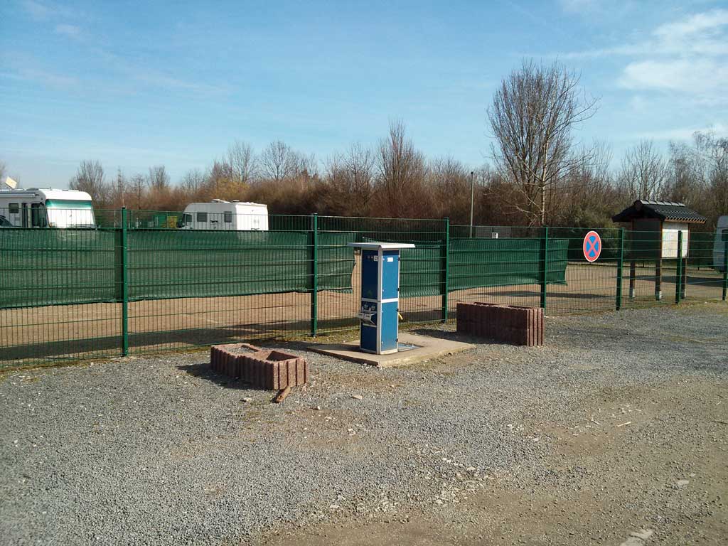 Dafür ist er allerdings nun auch eingezäunt und besitzt eine Schranke. Außerdem gibt es mindestens zwei Stromsäulen und eine Ver- und Entsorgungsstation.