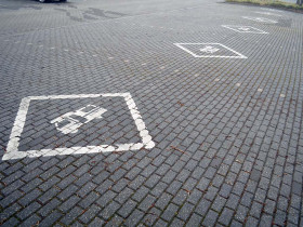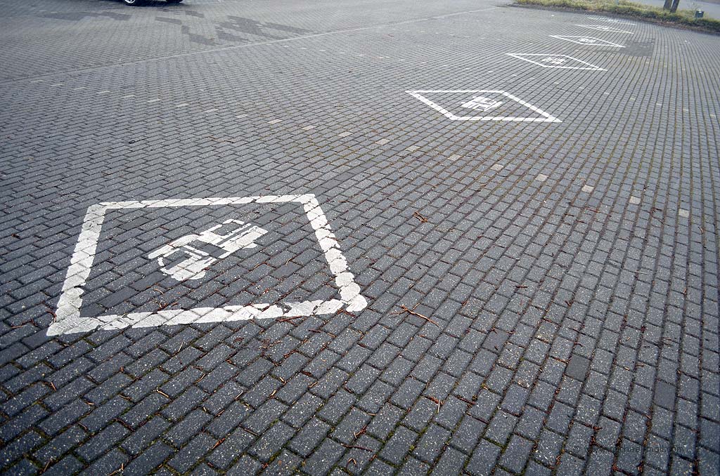 Fünf Stellplätze stellt die Stadt Mülheim kostenlos auf einem öffentlichen Parkplatz zur Verfügung. Niedlich ist allerdings, dass auf dem Schild von fünf Plätzen die Rede ist, jedoch sechs Plätze markiert wurden.
