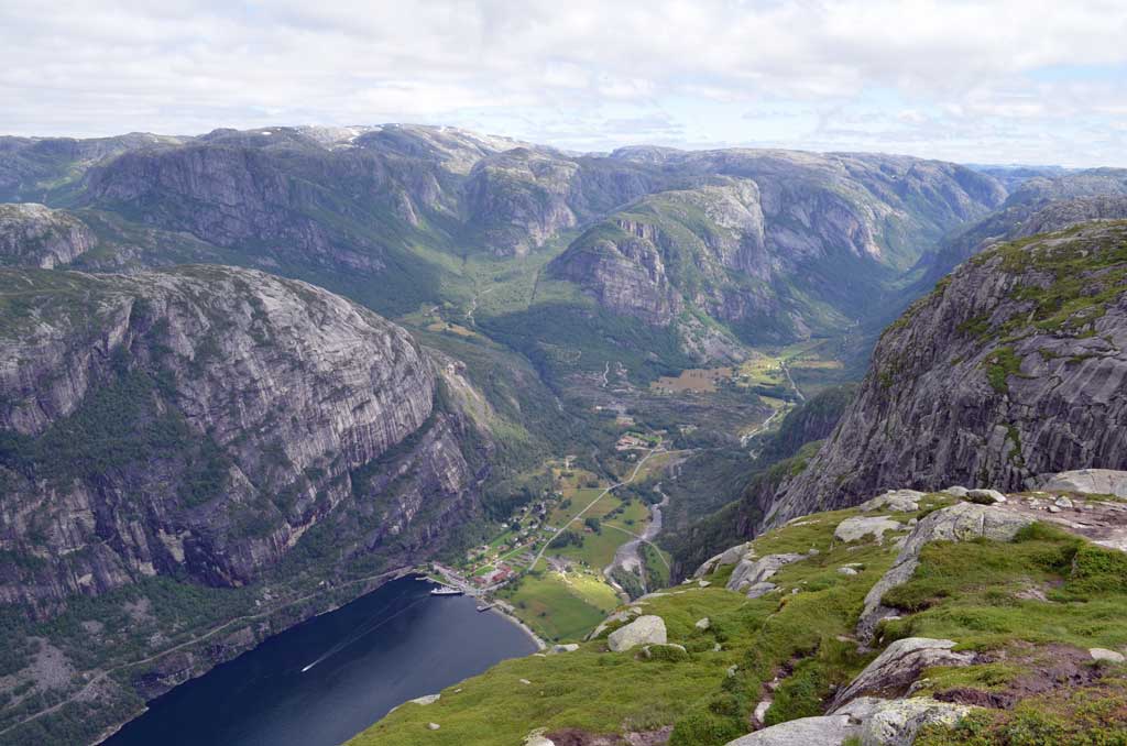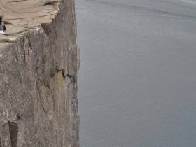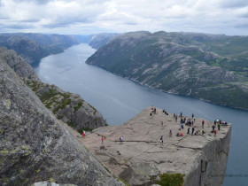 Bei schönem Wetter ist es ziemlich voll und besonders die jüngere Generation ist üppig vertreten und scheint ein Wettrennen ausgemacht zu haben. Am Ende des Wegs wartet dann der Kjeragbolten auf einen, der nicht viel mehr Standfläche bietet als eine herkömmliche Tischplatte. Darunter geht es rund 1.000 Meter in die Tiefe, genauer gesagt in den Lysefjord.