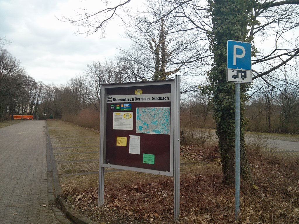Eine Ver- und Entsorgungsstelle habe ich nicht entdeckt und auch keine Stromsäule. Es ist halt einfach nur ein Parkplatz. Dafür allerdings kostenlos. Bleiben darf man drei Tage am Stück, Camping ist nicht gestattet. Was auch immer die Stadt Bergisch Gladbach nun darunter versteht. Außerdem, so heißt es auf einem Infoblatt, müssen sich Wohnmobilbesitzer mit Schwimmbadbesuchern arrangieren, wenn das Schwimmbad mal sehr voll sein sollte. Die Gefahr sehe ich bei diesem riesigen Parkplatzgelände eher weniger, allerdings heißt das natürlich auch, dass Wohnmobilisten hier keinen Anspruch auf einen Parkplatz haben.