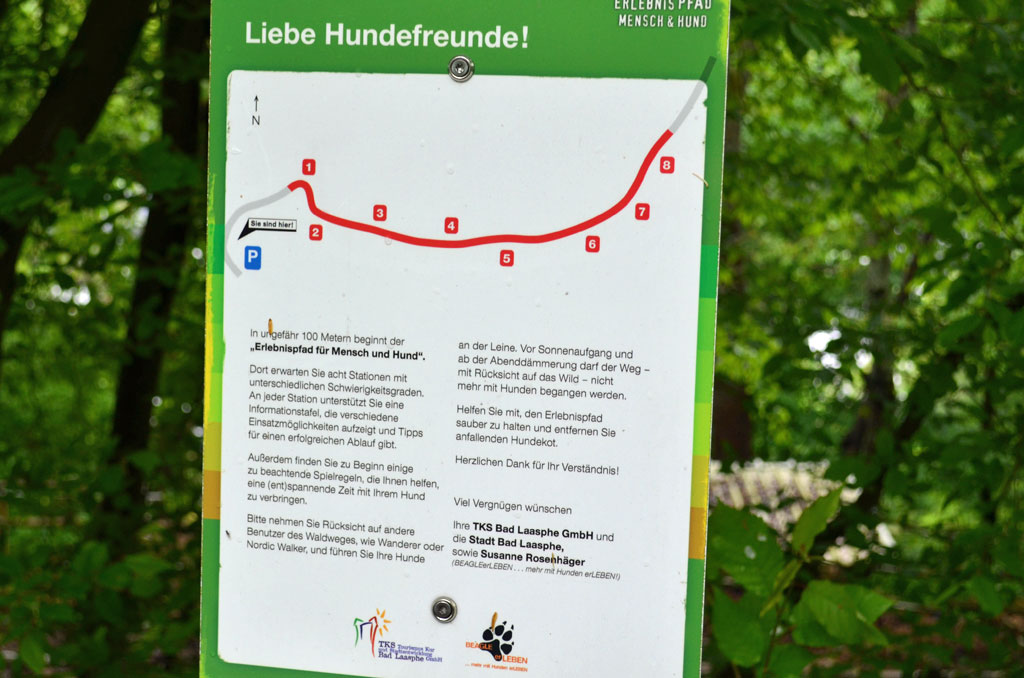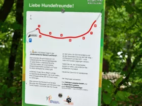 Da gibt es drei Wandertouren und eine davon ist mit mehreren Spielstationen für den Hund versehen.