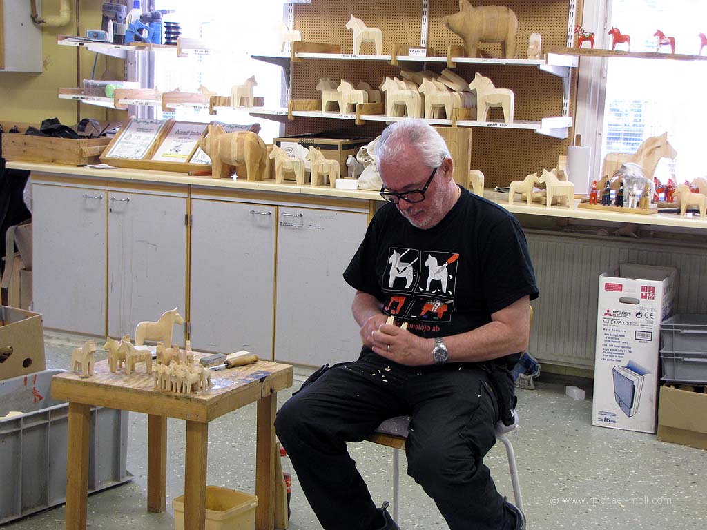 Wer bei Mora am Siljansee ist, sollte es sich auf jeden Fall nicht entgehen lassen, einen Blick in die Werkstatt zu werfen, wo die kleinen roten Pferde hergestellt werden. Ich habe heute auch auf meinem Blog ein paar Bilder online gestellt.
