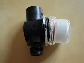 Dieser besteht eigentlich aus einem schwarzen Plastikstück, auf das der Filter geschraubt wird. Allerdings war das durchsichtige Plastikteil, in dem sich der Filter befindet, kaputt, wie man hier sehen kann:
