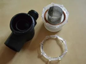 Zwar hatte der Fachhändler gerade kein Ersatzteil (ca. 9,50 €) da und musste es bestellen, aber das ist nicht schlimm, denn man kann den Wasserschlauch auch ohne den Filter an die Pumpe schrauben, was ich jetzt für die nächsten Tage erst mal gemacht habe, bis der bestellte Filter eintrifft.