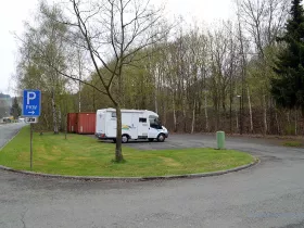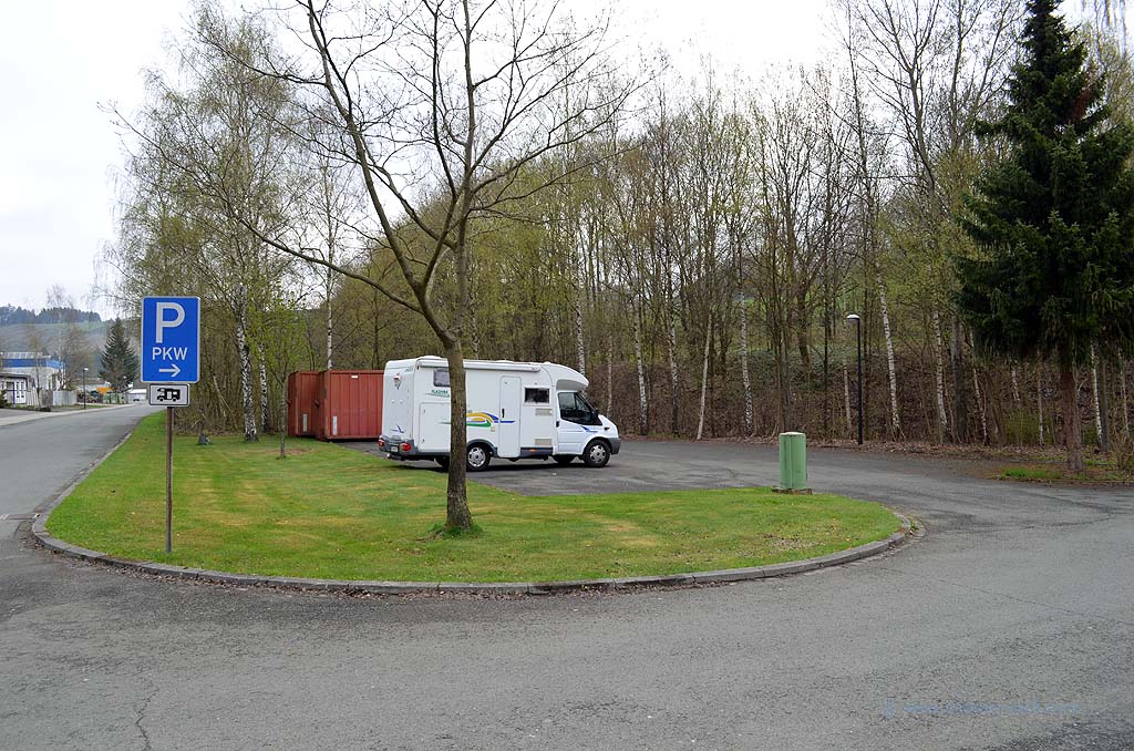Dieser Stellplatz gehört wohl mit zum Parkplatz des Besucherbergwerks Ramsbeck. Aber er liegt rund 200 Meter vom Eingang entfernt, auf der anderen Seite der Hauptstraße. Es gibt schönere Stellplätze, aber dafür war die Nacht ruhig und es reicht auf jeden Fall für die Durchreise.