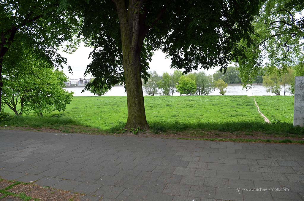 Hinter mir befinden sich direkt die Fahrzeuge, also ein schöner Ausblick auf den Rhein