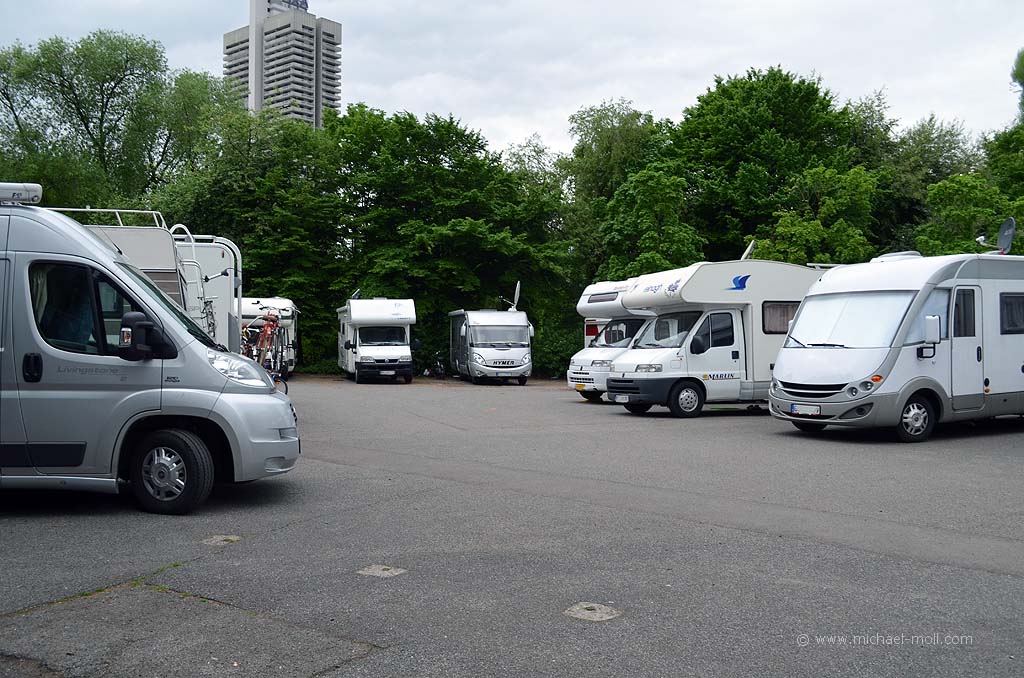 Der Platz existiert seit 2005 und hat Stellflächen für rund 65 Wohnmobile. Wie das bei einem Großstadt-Stellplatz eben so ist, steht man dort schon mal recht beengt. Aber man ist ja sowieso damit beschäfitgt, Köln zu besichtigen. Und außerdem führt direkt am Stellplatz der Rheinradweg und damit auch der Rhein vorbei.