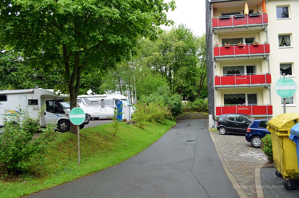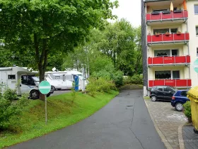 Bad Laasphe hat einen Stellplatz für Wohnmobile in einem Wohnviertel gleich hinter dem Rathaus.