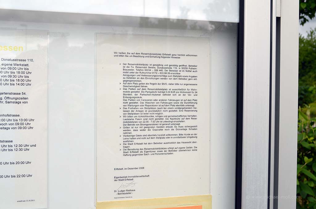 Die Übernachtung auf dem Stellplatz kostet 6 Euro. Stromgeneratoren sind nicht erlaubt und die Ver- und Entsorgungsstation dürfen nur Übernachtungsgäste nutzen. Ansonsten befindet sich der Platz direkt am Schnittpunkt zweier Straßen (Kreisverkehr) und hat meiner Meinung nach nicht sonderlich viel attraktives zu bieten. Daher hat mich der gut gefüllte Platz bei meiner Ankunft etwas verwundert.