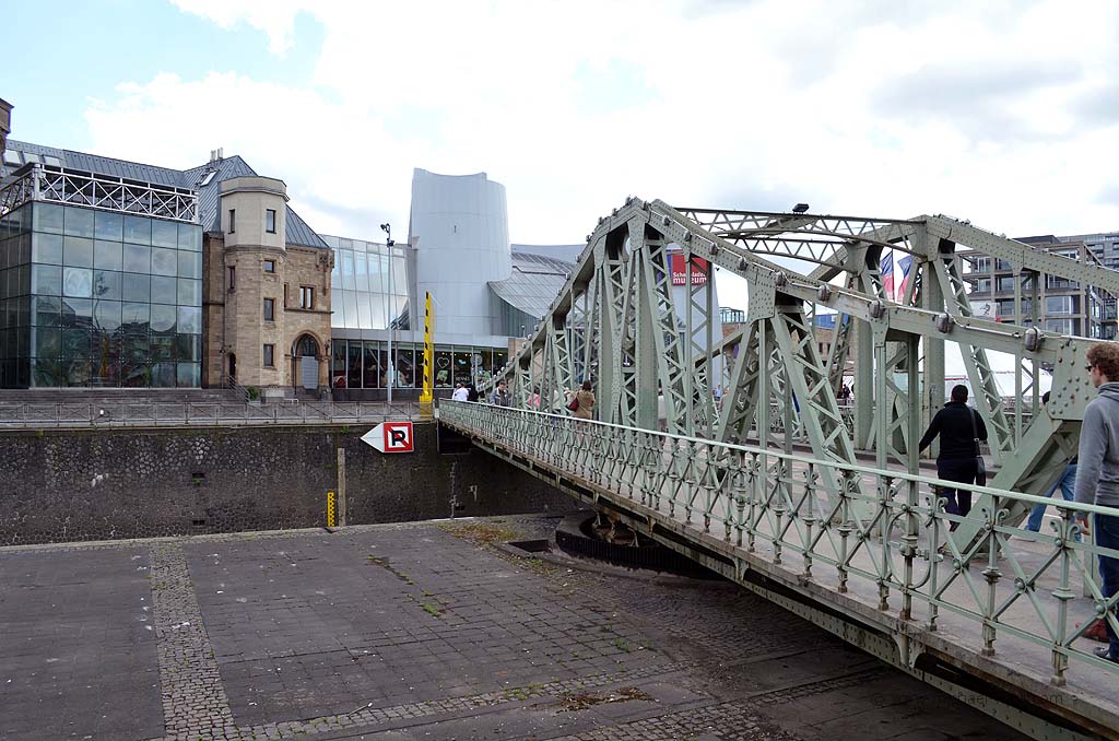 Denn der Zollhafen bzw. Rheinauhafen ist in gewisser Weise eine Halbinsel. Das Schokoladenmuseum befindet sich genau an der Nordspitze. Auf der "Festlandseite" der Brücke ist übrigens noch das Senfmuseum.