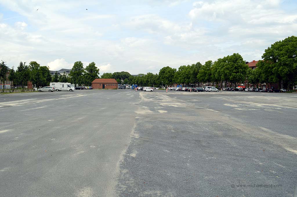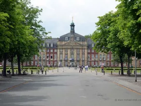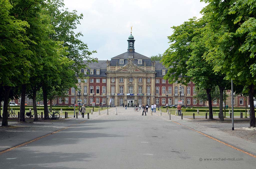 Schloss in Münster. Rechts ist der nördliche Parkplatz, links der südliche.