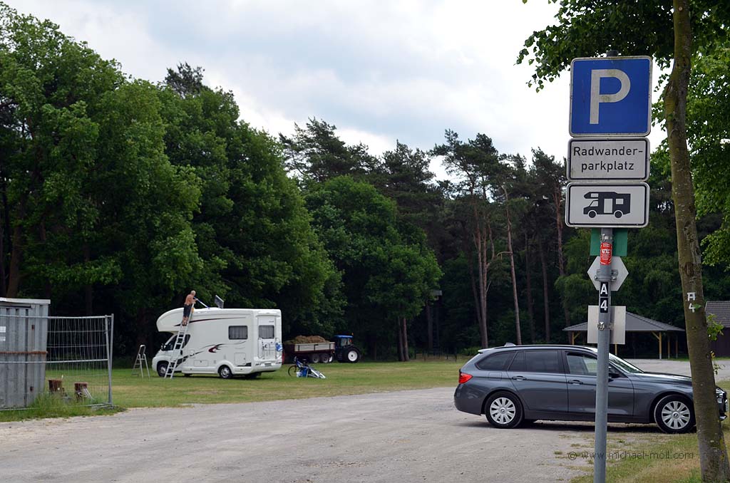 Aber eigentlich ist er ganz nett. Ver- und Entsorgung gab es da keine, die befindet sich für alle Stellplätze am Stellplatz Hüttendyk. Dieser hier trägt übrigens den Namen Hausdülmen. Er liegt schön ruhig, nennt sich auch Radwanderparkplatz, weil man dort direkt in einige schöne Fahrradrouten einsteigen kann und macht insgesamt einen netten Eindruck. Lediglich wenn nebenan auf dem Sportplatz etwas los ist, wird es wohl nicht ganz so ruhig sein.