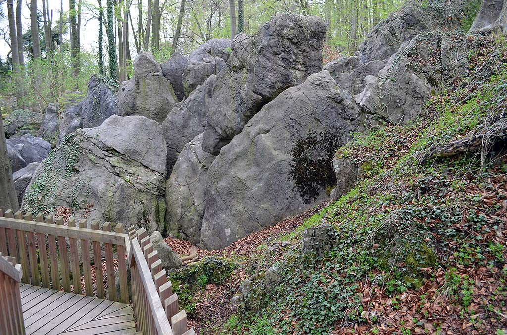 Aber wenn man mit der Geologie nicht so viel am Hut hat, dann ist man schnell durchgegangen. Das Felsenmeer liegt innerhalb eines Waldes in einer Senke und ist mit Wanderwegen erschlossen und frei zugänglich. Direkt am Großen Felsenmeer kann man über eine Holztreppe hinab zu den Felsen steigen, um mitten in der Attraktion zu sein oder auch auf einer Brücke das Felsenmeer überqueren und sich alles von oben anschauen.