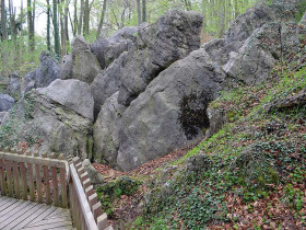 Aber wenn man mit der Geologie nicht so viel am Hut hat, dann ist man schnell durchgegangen. Das Felsenmeer liegt innerhalb eines Waldes in einer Senke und ist mit Wanderwegen erschlossen und frei zugänglich. Direkt am Großen Felsenmeer kann man über eine Holztreppe hinab zu den Felsen steigen, um mitten in der Attraktion zu sein oder auch auf einer Brücke das Felsenmeer überqueren und sich alles von oben anschauen.