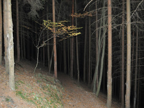 Mir ist es auch schon bei einer Tageswanderung passiert, dass ich abends im stockdunklen Wald stand (übrigens mitten in Deutschland, verursacht durch eine schlechte Wegbeschilderung). Da half eigentlich nur, dass ich alle paar Meter ein Foto mit Blitz gemacht habe. Das sah dann so aus: