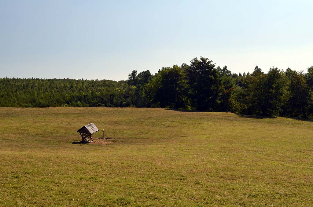 Schutzhütte am sogenannten Steinkompass. Gut, hier bin ich dann doch auf etwas Werbung reingefallen. Große Steine zeigen zum Beispiel ein riesiges W an. Da das sogar ungefähr in Richtung Westen zeigt, passte das schon. Erst später sah ich, dass rechts und links die Buchstaben R und E in den Boden eingelassen waren. War also nichts mit den vier Himmelsrichtungen, sondern Werbung für RWE :tja: