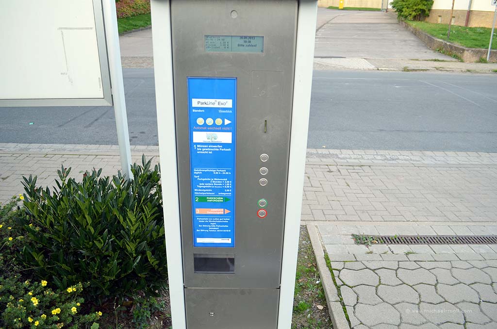 Die Übernachtung kostet 8 Euro auf dem sogenannten "Hannes Weserblick". Gezahlt wird per Parkticket. Auf dem vierten Bild kann man deutlich sehen, dass man Unterfahrkeile dabei haben sollte.