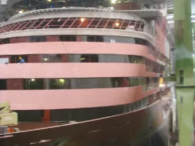 Wie man dem verlinkten Wiki-Artikel entnehmen kann, war das auch das Schiff, das bei der Überführung auf der Ems zu einem ziemlichen Stromausfall führte.