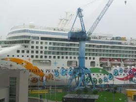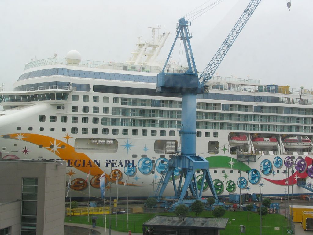 Außen, vor dem Trockendock, wartete bereits die Norwegian Pearl darauf, getauft und überführt zu werden: