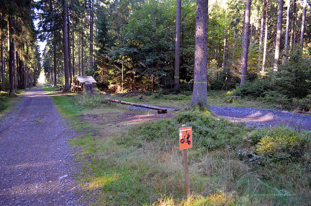 Links ist eigentlich der Waldwanderweg. Wird aber auch von den Monsterrollern genutzt. Rechts die Trasse für die Mountainbiker.