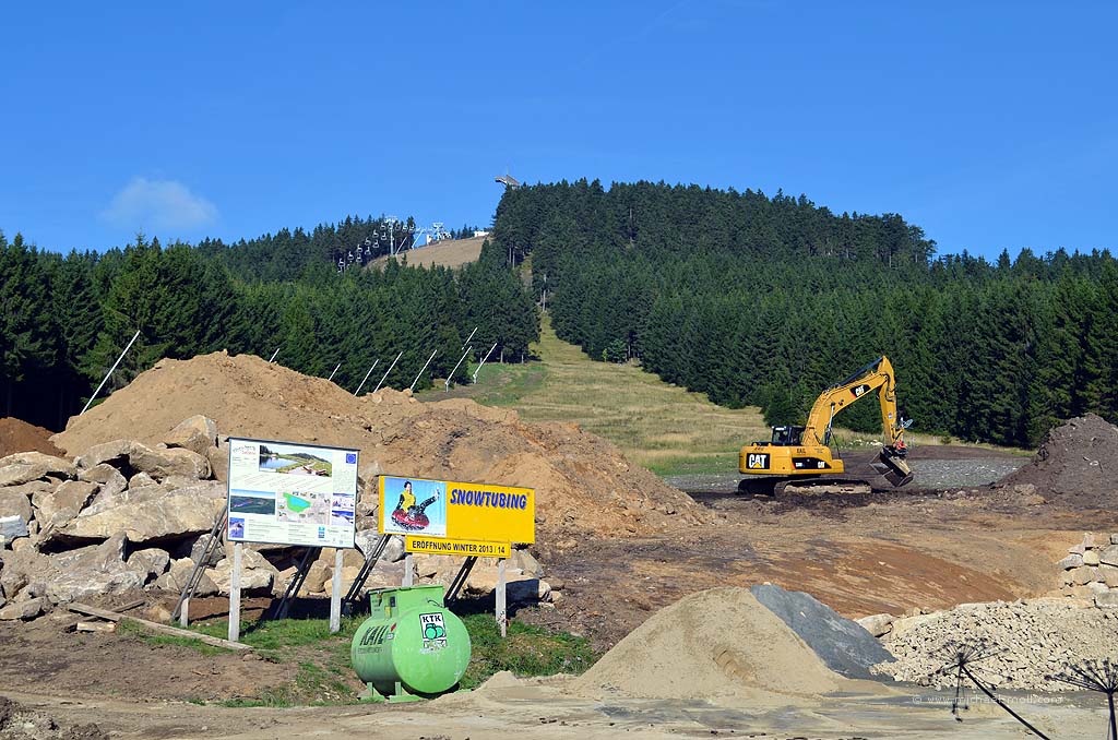 Hier entsteht eine Skianlage mit Großparkplatz. Eröffnung in der Saison 2013/14. Eine Schneise im Wald für den Sesselift und die Skiabfahrt und neben einer Baumreihe eine weitere Schneise für Snowtubing.