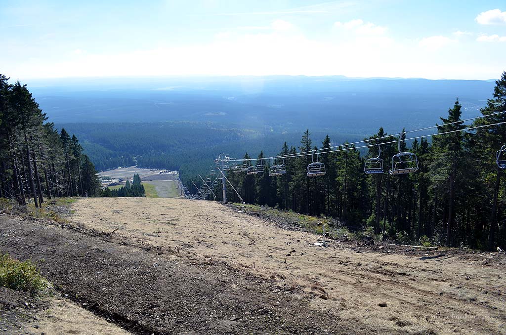Vom Parkplatz aus sieht man dann auch schon die Skischanze. Na gut, die steht da schon seit 1922, aber laut Wiki-Artikel gibt es westlich der Seilbahn noch eine weitere, kleinere Schanze am Fuße des Wurmbergs. Die habe ich noch nicht mal gesehen. Ist bei GoogleMaps aber erkennbar.