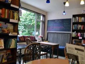 Bei schönem Wetter stellen die Buchläden ihre Stände auch nach draußen.