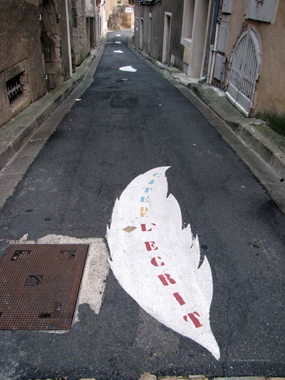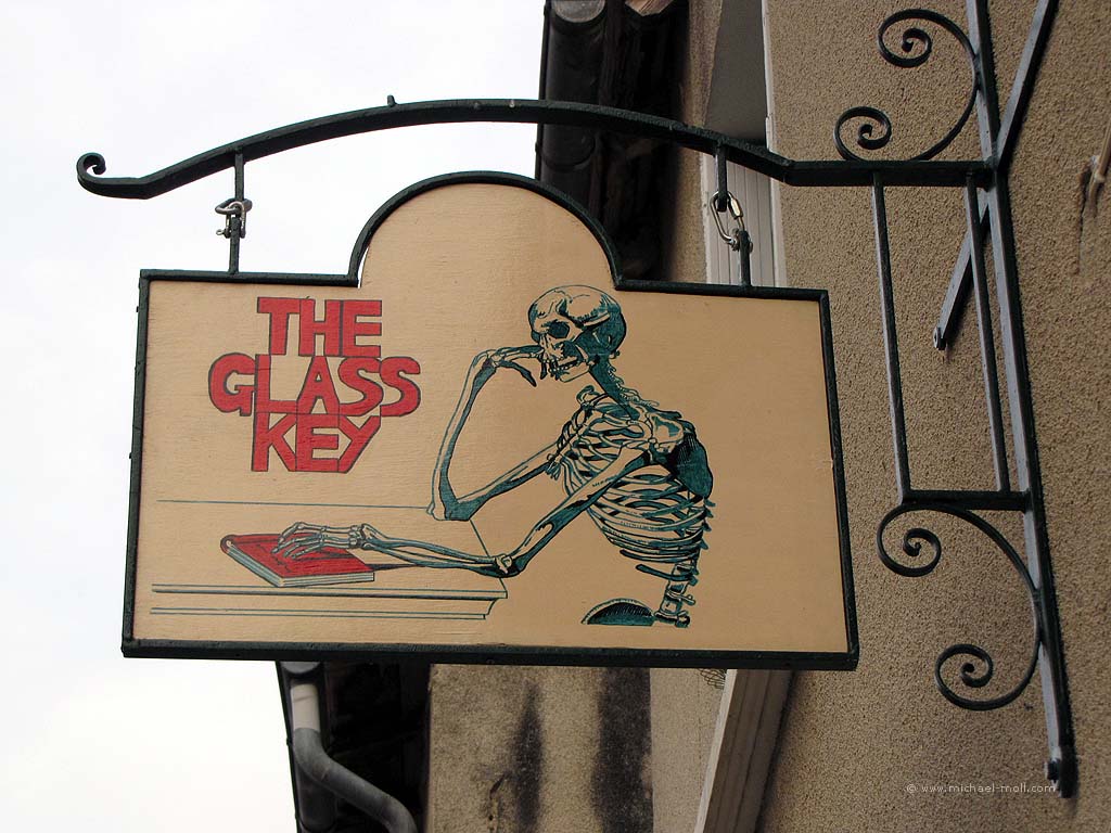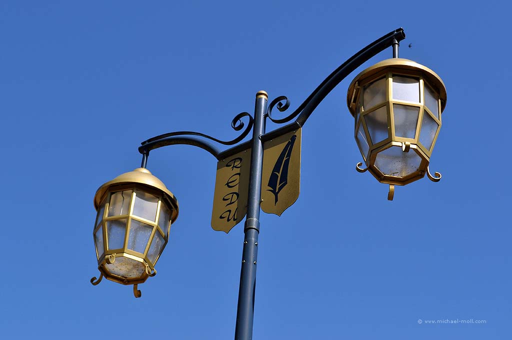 Die Straßenlaterne mit Papierrolle zeigt, dass es nicht nur Buchläden bzw. Antiquariate gibt, sondern auch liebevolle Details.