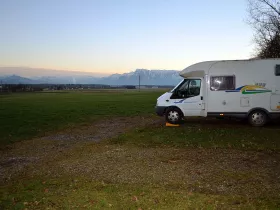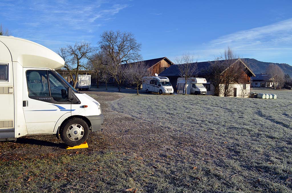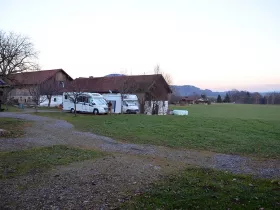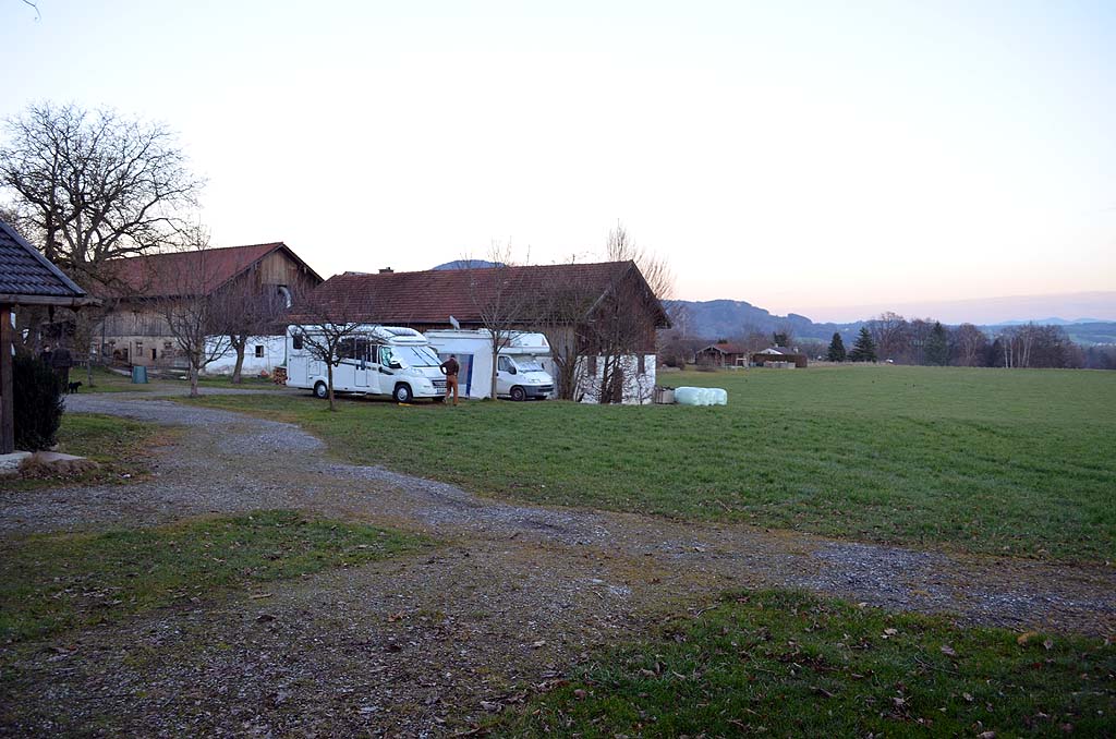 Nördlich von Freilassing gibt es noch den kleinen Ort Saaldorf. Dieser hat wiederum eine Ansiedlung namens Gausburg. Am Rande von Gausburg existiert der Bauernhof von Hansi. Und Hansi bietet nicht nur Ferien auf dem Bauernhof, sondern auch einen super Wohnmobilstellplatz, den ich nur empfehlen kann. Rund sieben Stellplätze haben eine wunderbare Aussicht auf die Alpen und auf Salzburg. Zwar verläuft direkt neben dem Bauernhof eine Bahntrasse, aber gefühlt kam da nur alle zwei Stunden ein Regionalzug vorbei. Strom ist auch vorhanden, ebenso kann die Chemietoilette entsorgt werden. Kostenpunkt: 9 Euro. Prädikat: Sehr empfehlenswert.