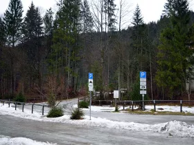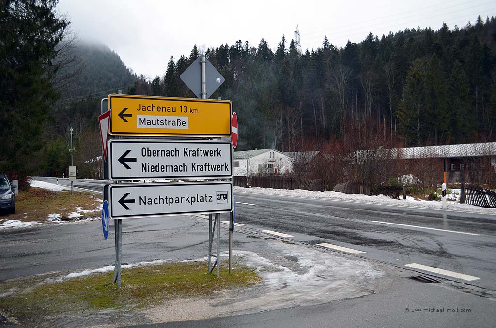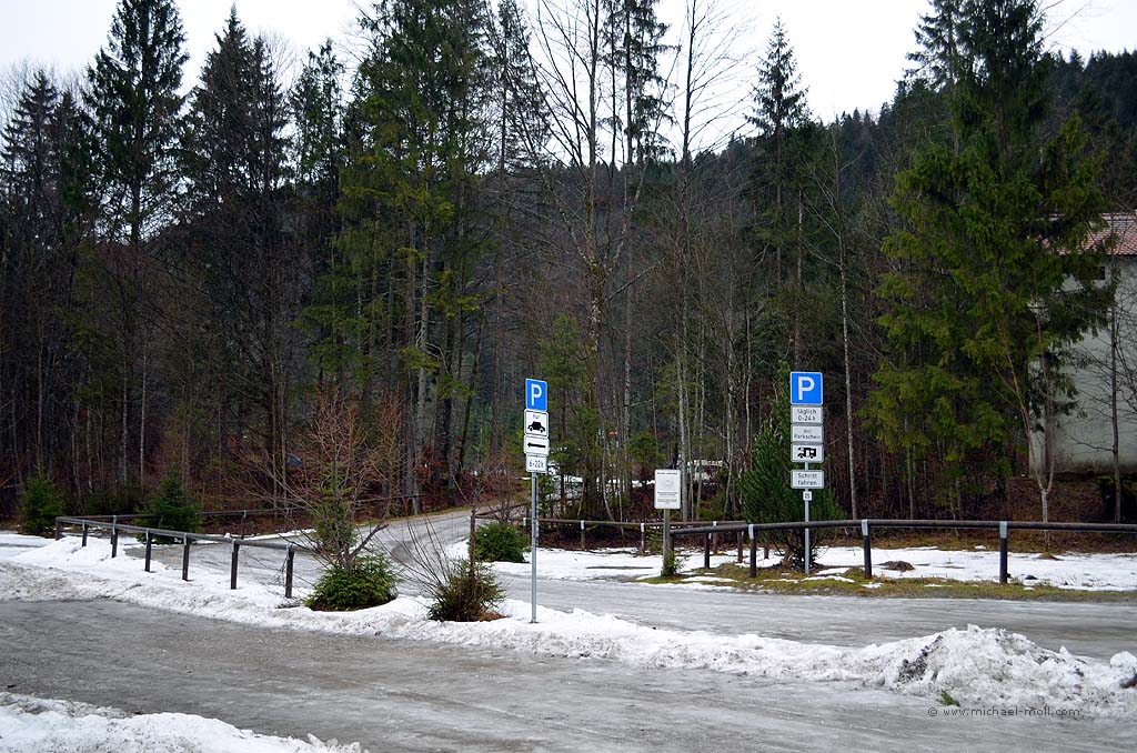 Wer nicht auf dem Wohnmobilstellplatz in Mittenwald übernachten möchte, der hat auch noch die Möglichkeit, den sogenannten Nachtparkplatz am Walchensee zu nutzen. Er liegt direkt an der Bundesstraße 11 zwischen Krün und Kochel am See. Weil er total vereist war, bin ich nicht draufgefahren. Daher nur diese beiden Bilder: