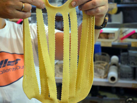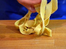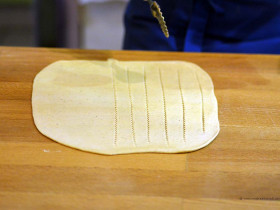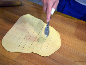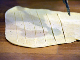 Erstmal wird der Teig ausgerollt und geschnitten.