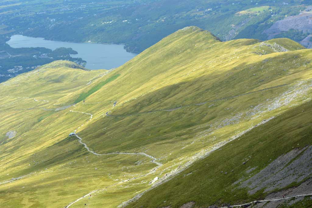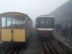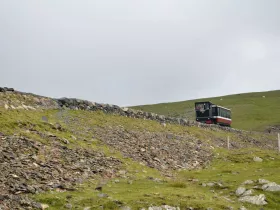 Ich habe noch gar nichts von meiner letztjährigen "Besteigung" des höchsten Berges in Wales, dem Snowdon, erzählt. Na ja, von einer Besteigung kann auch nicht wirklich die Rede sein. Nachdem wir nämlich mittlerweile auf unserer UK-Irland-Reise den Ben Nevis (höchster Berg Schottlands), den Scafell Pike (höchster Berg Englands) und den Carrauntoohil (höchster Berg Irlands) bestiegen hatten und das Wetter an dem Tag zunächst ziemlich unfreundlich aussah, überkam uns spontan die Lust, mit der Zahnradbahn hinauf zu fahren.