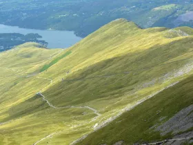Bis es soweit war, hatte sich das Wetter natürlich auch mittlerweile etwas aufgeklart. So saßen wir also dann in der engen Zahnradbahn und schauten ein wenig neidisch nach draußen zu den Wanderern. Der Weg schien nämlich sehr leicht begehbar zu sein und bot zahlreiche schöne Ausblicke, die wir nun nicht gerade genießen konnten.