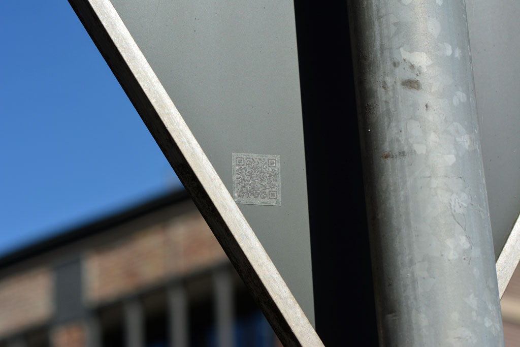 So, wie angekündigt habe ich mir vorhin mal einen Munzee-Qode angeschaut. Dieser hier klebt an einem Vorfahrt-Achten-Schild in der Nähe der Ruhr: