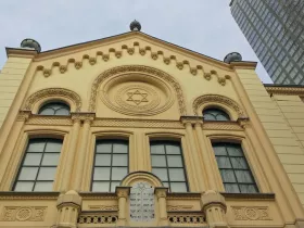 Die unteren zwei Bilder habe ich an der Synagoge gemacht und sie steht jetzt genau hinter mir.![]()