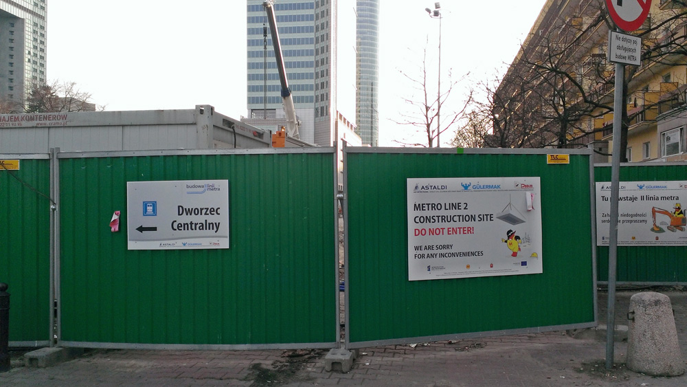 Hier die Baustelle der Warschauer U-Bahn. Man baut gerade die Linie 2. Das ist die einzige Metro in Polen.